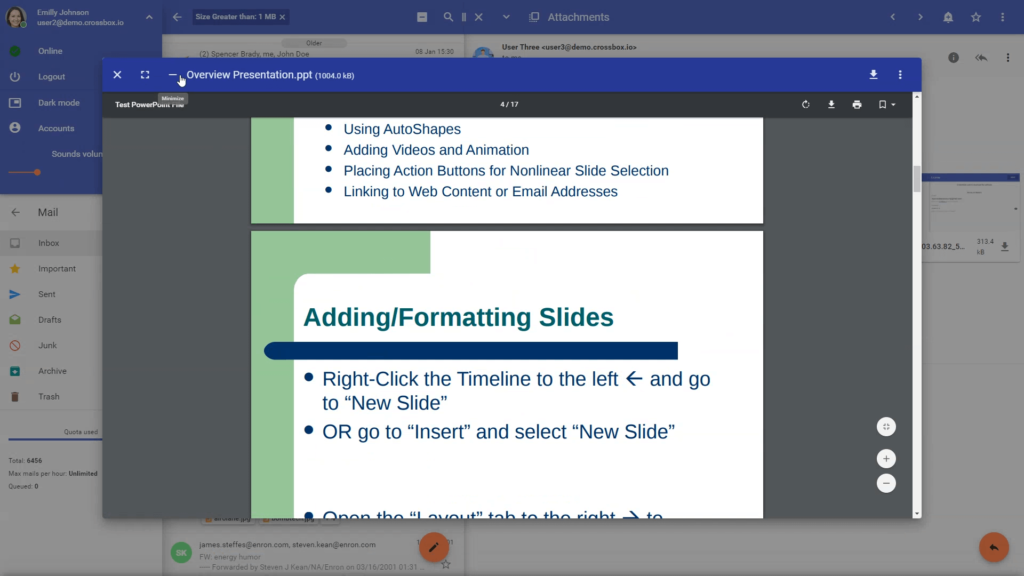 Elimina le restrizioni sulle dimensioni degli allegati, permettendo l'invio di file di grandi dimensioni senza ricorrere a servizi di terze parti.