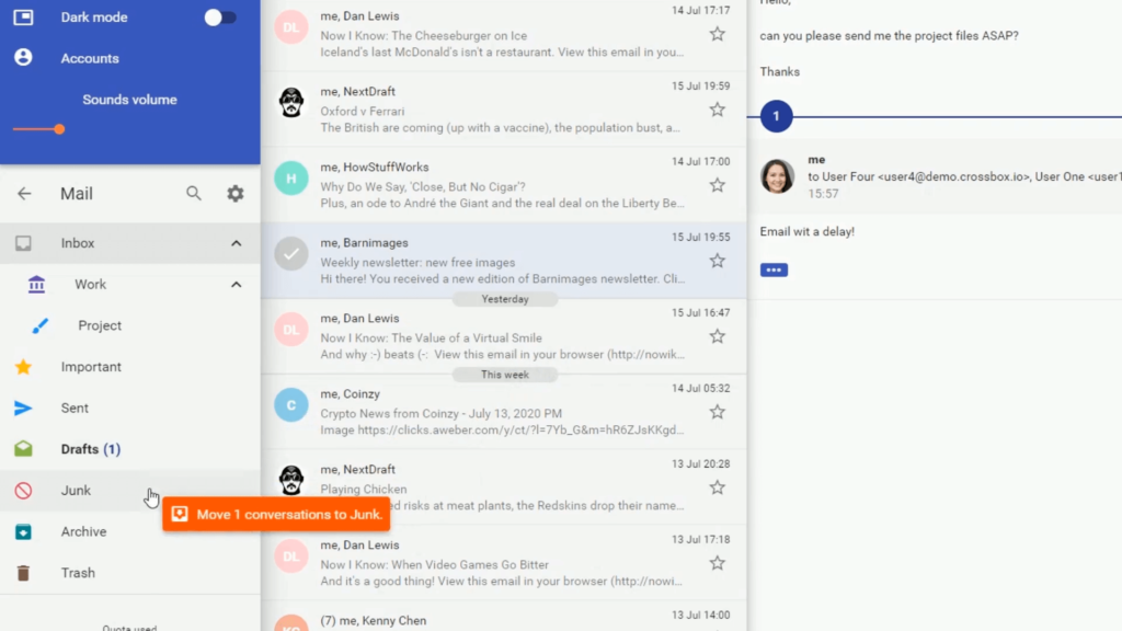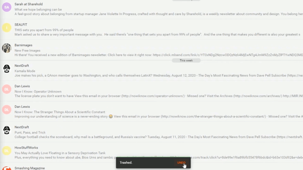 Sì, con il pulsante “Annulla” puoi recuperare rapidamente email inviate o eliminate per errore.