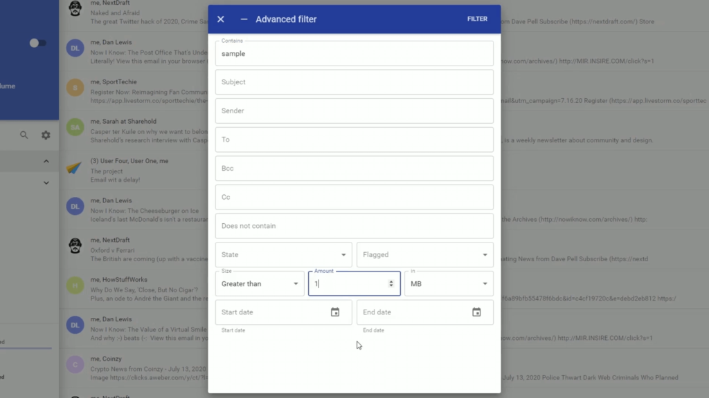 Imposta filtri, organizza i mittenti in cartelle, filtra in base al contenuto e tanto altro…
