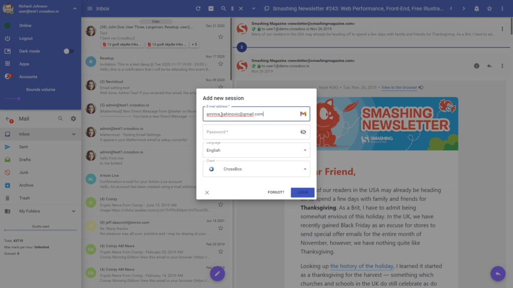 Gestisci tutte le tue email in cloud, unica interfaccia, ovunque tu sia.
