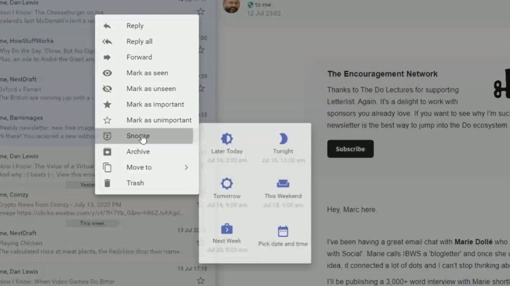 Email Snoozing